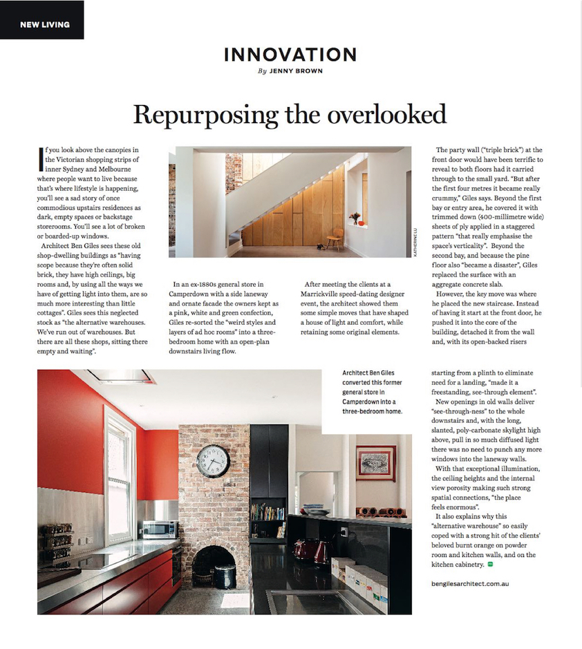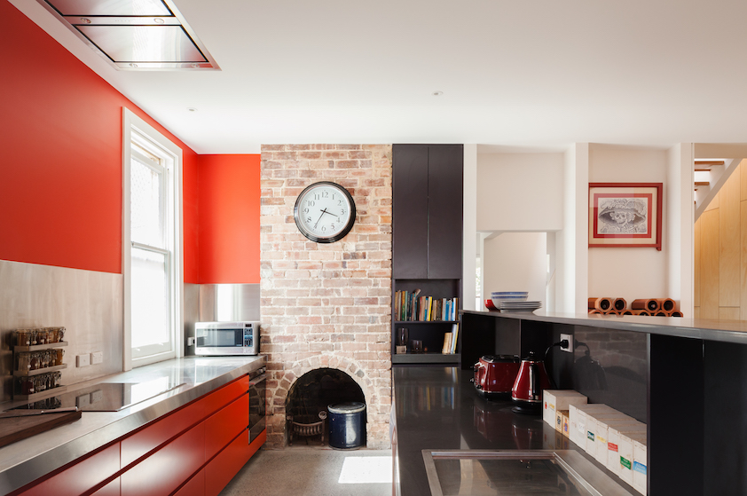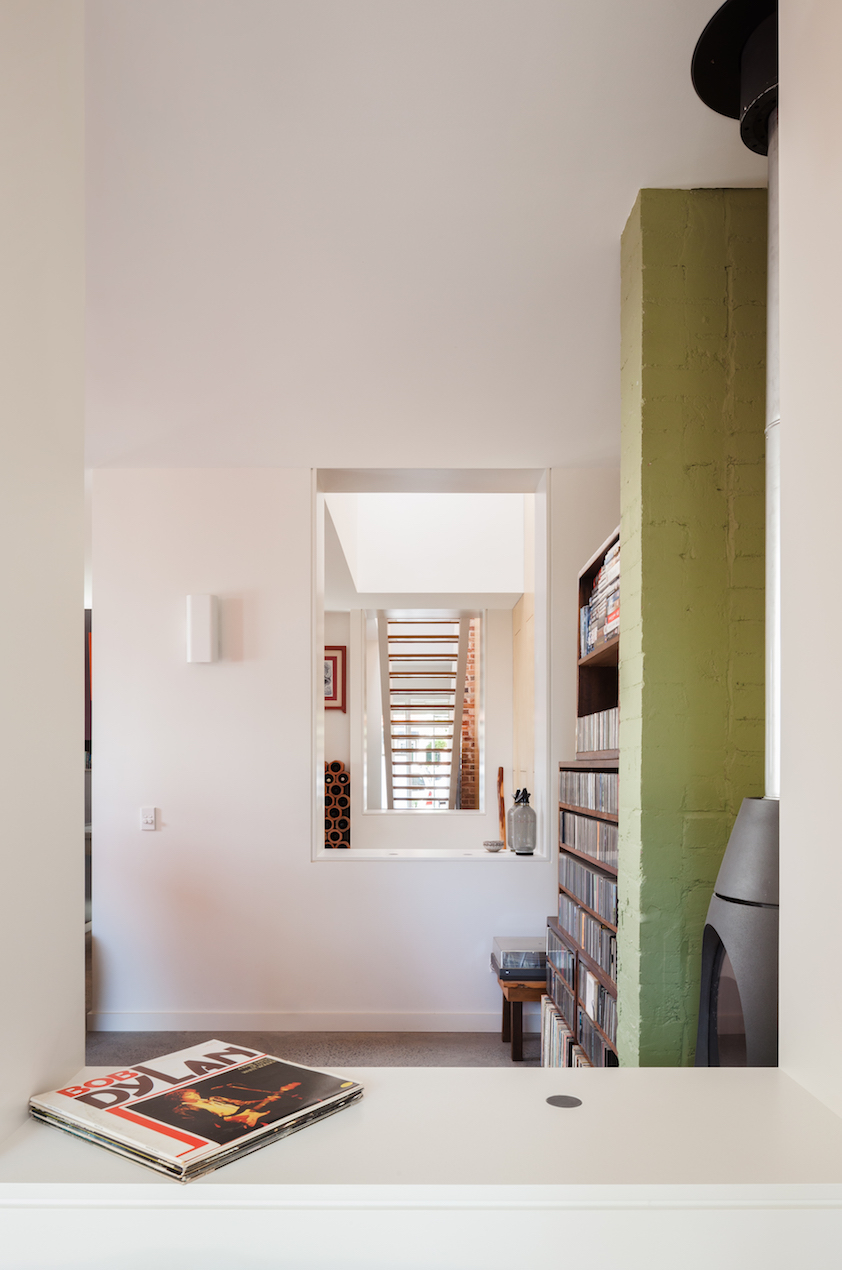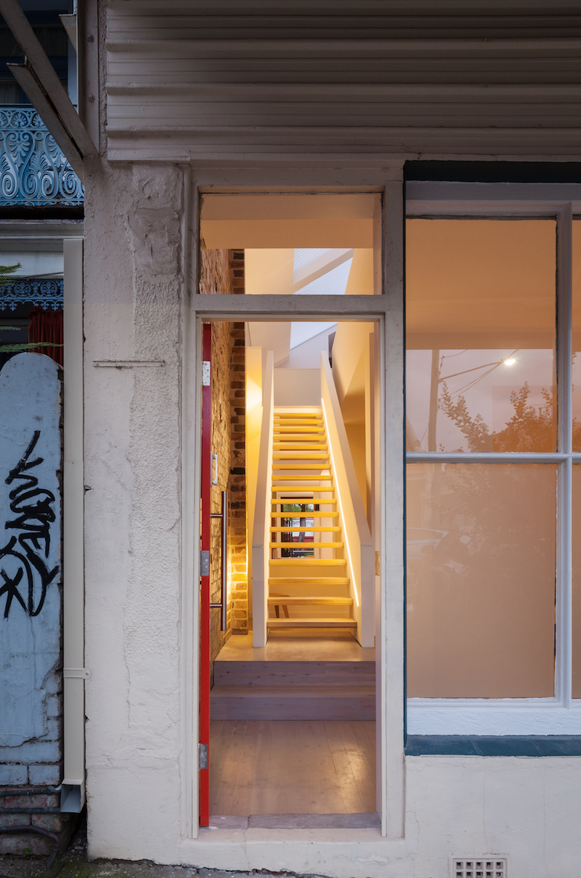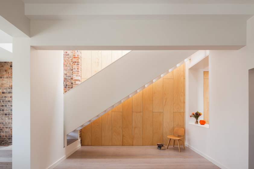 Renovation of a nineteenth-century terrace house and former shop that had been significantly modified. The house was stripped back to its orginal bones and the circulation was re-arranged around a new stair atrium. The new rooflight overhead now brings daylight down into the centre of the house. Much of the original brickwork was retained.