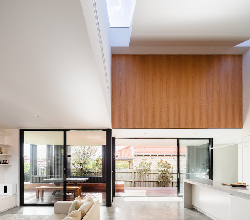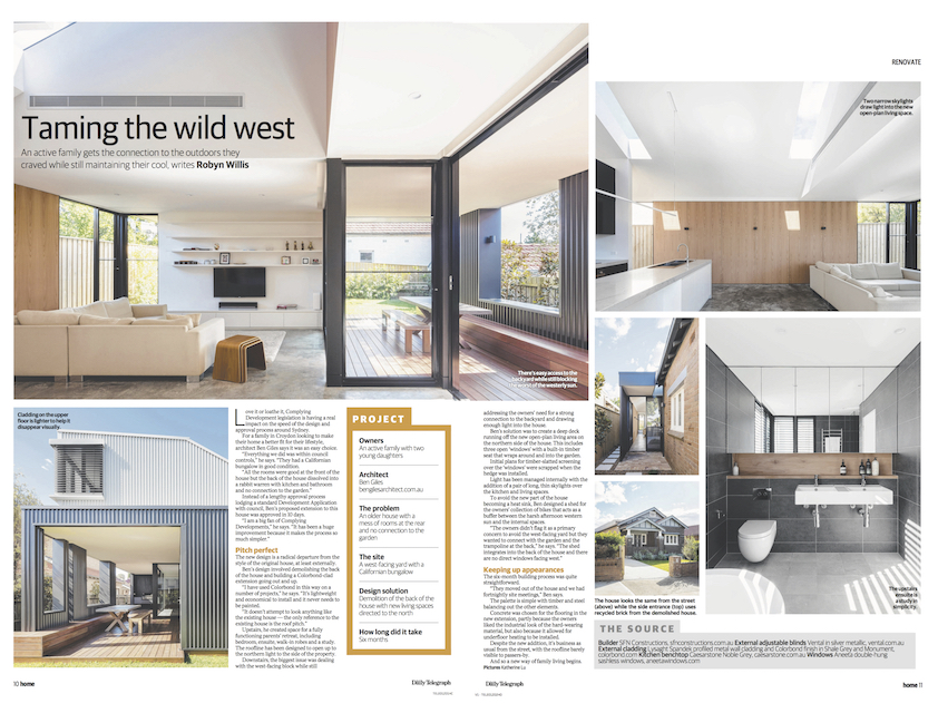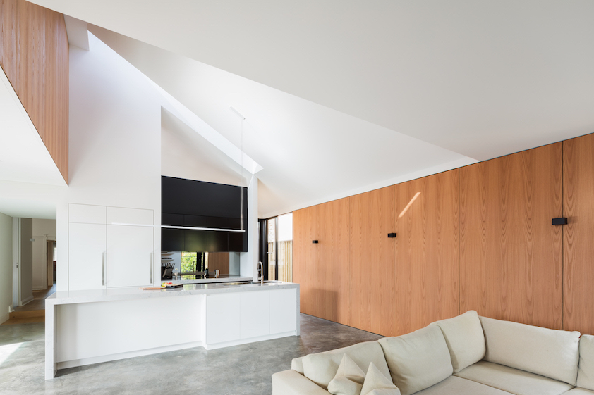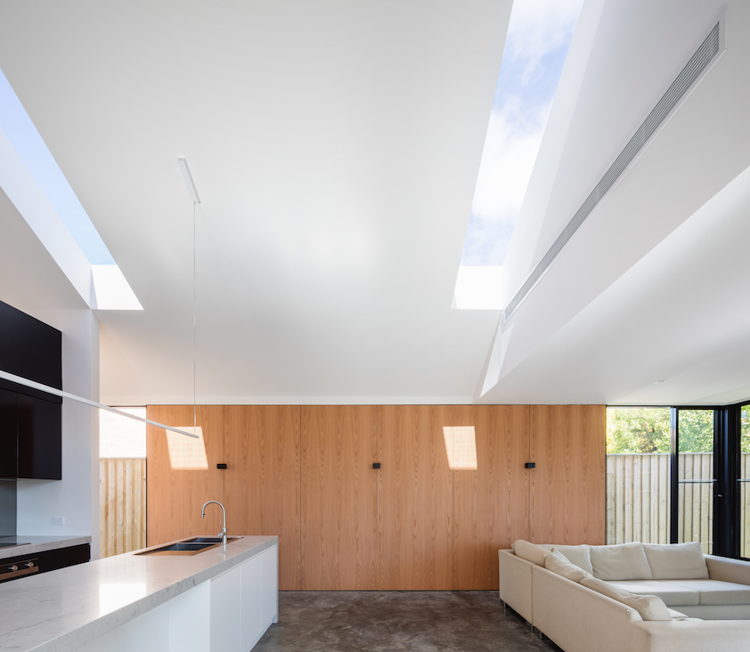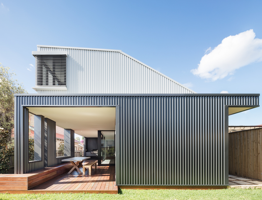 This was the brief for an alterations and additions project to an existing house in Croydon. We created a new two-storey pavilion at the rear of the house with a large north-facing covered deck for the owners and their two young daughters. The roof was designed to follow the existing line and remain within the height controls so that the project could be assessed under the Complying Development Code (CDC).